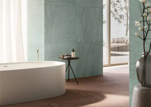 La teinte verte foncée de QUIET R MATT crée une ambiance sobre et raffinée, s’accordant facilement avec le bois, le métal ou d’autres matériaux naturels pour composer des intérieurs contemporains et chaleureux. Le carrelage INK QUIET R MATT de Refin, disponible en direct usine chez Caro Centre, combine le design italien haut de gamme avec un prix accessible, parfait pour tous vos projets résidentiels ou professionnels.