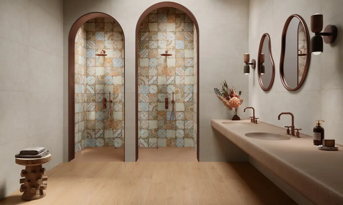 Ajoutez une touche rétro chic à votre intérieur avec le carrelage décor AUDREY NAT. RECT. de la série CYTHERE par NAXOS. Inspiré des carreaux ciment traditionnels, il offre un design élégant et intemporel, idéal pour personnaliser vos sols et murs. Disponible chez Caro Centre, spécialiste du carrelage de luxe à prix accessible.
