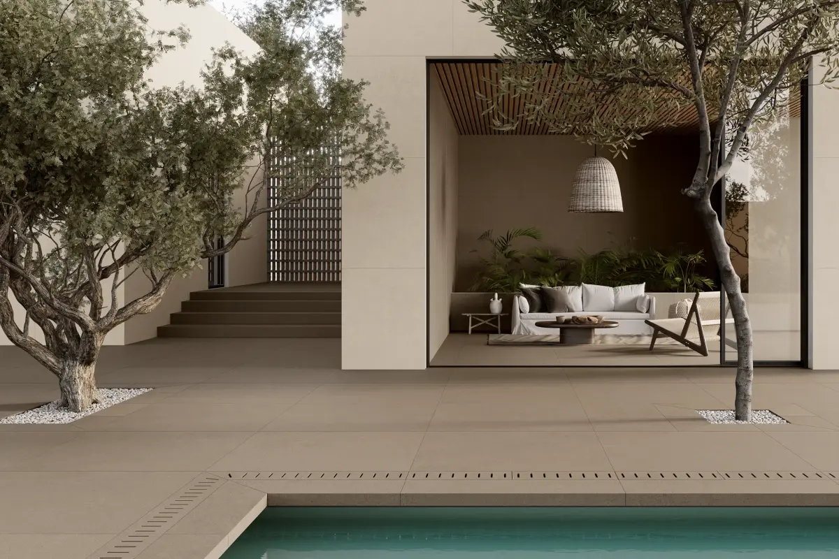 Le carrelage extérieur KHROMA CORDA 20MM RETTIFICATO de Novabell incarne l’harmonie entre authenticité et innovation céramique. Sa teinte corda, un beige argile doux et lumineux, évoque la chaleur des terres naturelles tout en offrant un style sobre et raffiné, parfait pour les espaces extérieurs modernes.