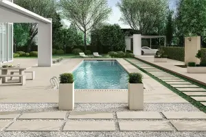 Grâce à sa conception spécialement adaptée à une pose sur plots, le carrelage NORGESTONE est parfait pour créer une terrasse stable, une plage de piscine sécurisée, ou une allée carrossable tout en garantissant un drainage optimal. Disponible en plusieurs teintes élégantes comme Ivory, Grey ou Dark, cette gamme est pensée pour s’harmoniser avec tous les environnements extérieurs, qu’ils soient contemporains ou naturels.