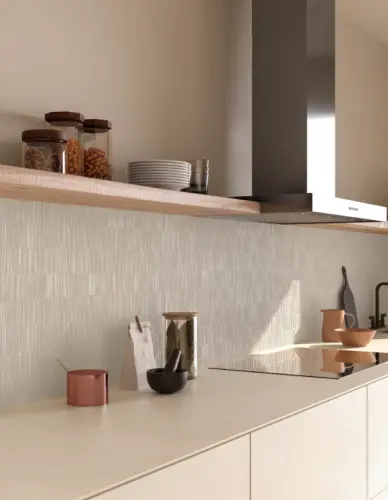 Le modèle Hand 3D Made Pomice RT appartient à la collection Hand de Ragno, une série qui célèbre la matière et le travail manuel. Sa surface tridimensionnelle évoque la texture de l’argile façonnée à la main, offrant un relief doux et irrégulier qui capte la lumière et enrichit visuellement les murs.