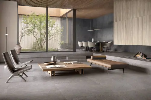 La collection ERAS de Refin s’inspire des transformations naturelles des surfaces par le temps et les éléments, capturant la richesse et la profondeur des pierres. Le modèle GREIGE R MATT évoque la pierre naturelle grège, subtilement nuancée, qui confère chaleur et élégance aux sols et aux murs. La surface Silktech mate offre un toucher doux et agréable tout en garantissant une adhérence R10 adaptée aux espaces intérieurs résidentiels et commerciaux.Fabriqué en grès cérame rectifié pleine masse, le carrelage GREIGE R MATT allie résistance et esthétique, supportant parfaitement l’usure, l’humidité et les chocs, tout en étant facile à entretenir. Les bords rectifiés assurent une pose harmonieuse avec joints fins, mettant en valeur la continuité et l’effet pierre naturelle. Ce carrelage convient idéalement aux salons, cuisines, salles de bains et chambres, offrant un rendu moderne, élégant et durable.