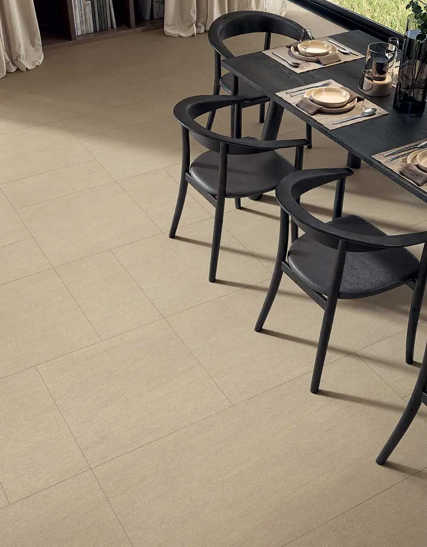 La chaleur de la pierre pour un confort visuel absolu Le modèle Beige de la collection Basaltina (Castelvetro Ceramiche) est la réponse parfaite aux tendances actuelles qui privilégient les matériaux naturels et les tons organiques. Contrairement aux gris froids, ce beige subtil apporte une sensation de sérénité et de confort à vos pièces de vie. Sa finition rectifiée permet une installation précise avec des joints très fins, offrant un aspect "dalle de pierre naturelle" d'une grande fluidité.