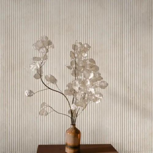 Parfait pour les murs de salle de bain, de salon, de cuisine ou de chambre, il apporte profondeur et mouvement à l’espace, tout en restant facile à entretenir et résistant à l’humidité. Le relief tridimensionnel capte la lumière naturelle et artificielle, créant des effets visuels changeants selon l’angle de vue et l’éclairage.